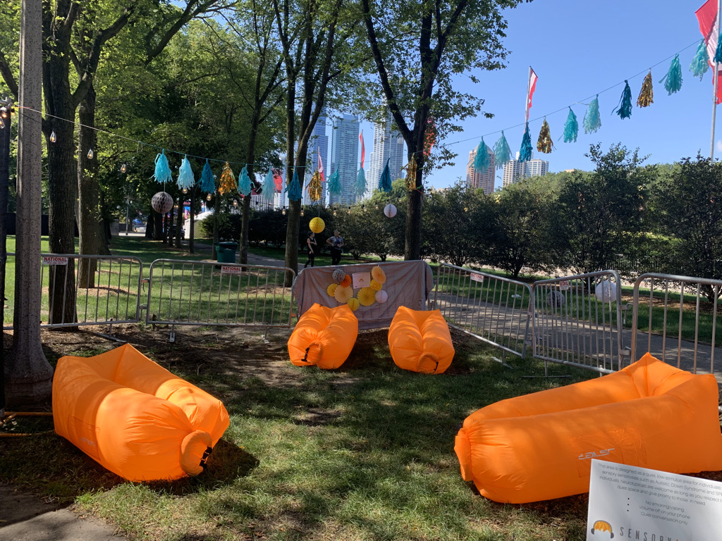 Even the most chaotic events can have soothing sensory spaces. This was our set-up at Chicago’s Lollapalooza.